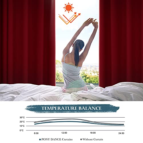PONY DANCE Tende per Finestre Camera da Letto Tende Oscuranti con Occhielli per Interni 100% Poliestere, 2 Pannelli L 106 x A 158 cm, Rosso