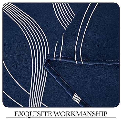 PONY DANCE Tende Oscuranti per Interni - Decorazione Tenda per Bambini con Motivo Curva Argento Tendecon Occhielli Tende Soggiorno Moderne 2 Pezzi L 140 x A 220 cm, Blu Navy