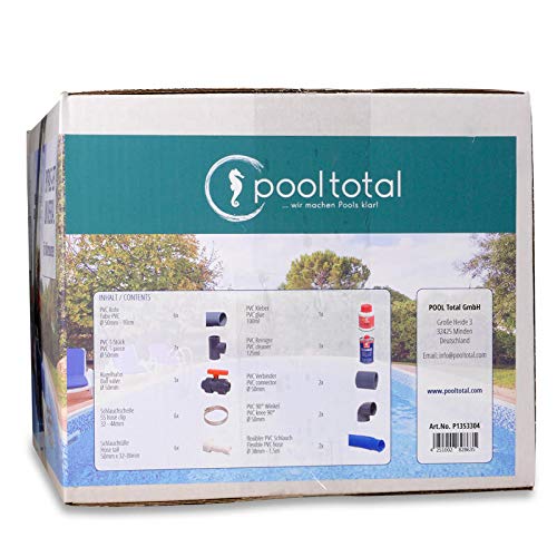 Il tubo per piscina blu in dotazione è costituito da 2 pezzi da 1,50 m di lunghezza ciascuno.Se il sistema di riscaldamento da collegare (pompa di calore, impianti solari, ecc.) deve essere montato ancora più a distanza, avrete bisogno di tubi più lunghi.