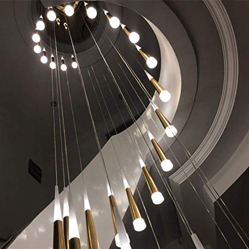 Popertr 24 luci luce pendente per soggiorno Villa 60Wceiling Lighting Apparecchio Duplex Apartment Spiral Scale Scale Lampadari Scala Appeso Lampada |Acrilico in alluminio