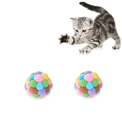 POPETPOP 3Pcs Giocattoli per Gatti Palline Arcobaleno Morbido Pom Pom Palle Giocattoli da Masticare Gattino Teaser Giocattoli Interattivi per Gatti