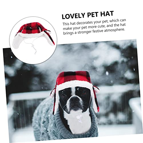 POPETPOP 2 Pz Cappuccio Antivento Per Animali Domestici Berretto Copricapo Per Animali Domestici Cappelli Invernali Per Cani Cappello Scozzese Rosso Cane Peluche Berretti Cappello Da Festa