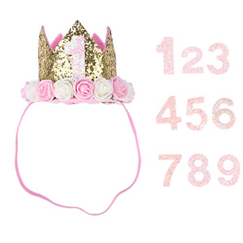 POPETPOP Corona in Oro con Fiore per Compleanno Numero 1-9
