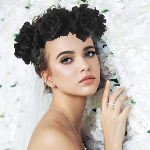 POPETPOP Corona Di Fiori Neri Copricapo Di Fiori Morti Fascia Di Fiori Corone Di Fiori Per Le Donne Corona Di Fiori Neri Goth Accessori Per Halloween Fascia Per Donna
