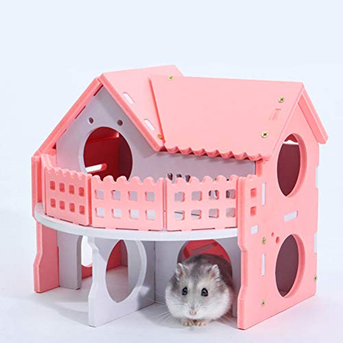 POPETPOP Criceto in Legno Rete Piccola casa degli Animali Ecologica Scala a Due Piani Scala Casa di Campagna Inverno Caldo colorato Pensione Rat Casa da Letto Piccolo Animale Domestico Casa di Riposo