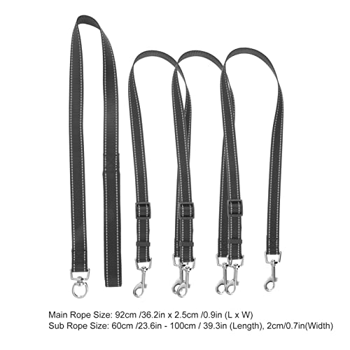 POPETPOP - Guinzaglio per cani in nylon resistente 3 in 1, impugnatura imbottita, guinzaglio a tre vie per animali da compagnia, accoppiatore, guinzaglio regolabile, guinzaglio triplo, riflettente