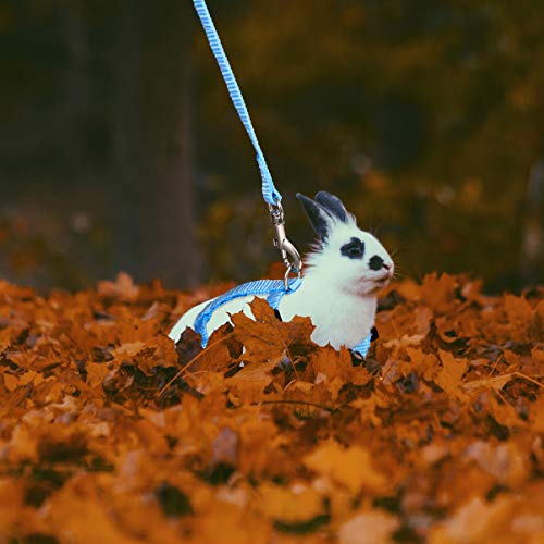 POPETPOP Imbracatura per Conigli Guinzaglio Coniglietto Regolabile Mesh Traspirante per Gattino Cucciolo Furetto Piccoli Animali Domestici Allenamento A Piedi Corsa Jogging (Azzurro)