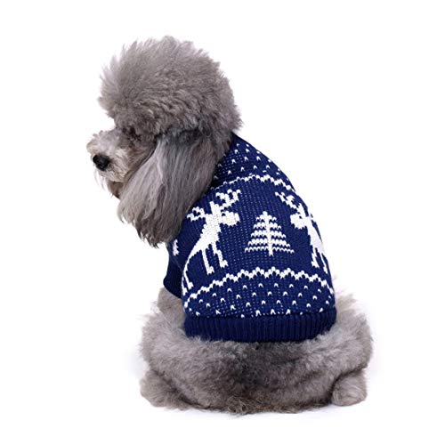 POPETPOP Maglione- Cane animale Domestico di Natale Renna Vacanze Vestiti animale Domestico Festival Blu Renna Maglione per Cani Cappotto Invernale (Blu)