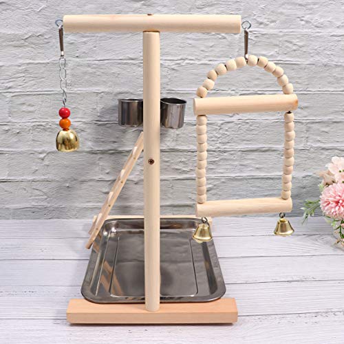 POPETPOP - Pappagallo da gioco in legno, per sala da palestra, con mangiatoia, tazze e anello campanella, per esercizi Playpalestra, per conure tortortortortorre, calopsite