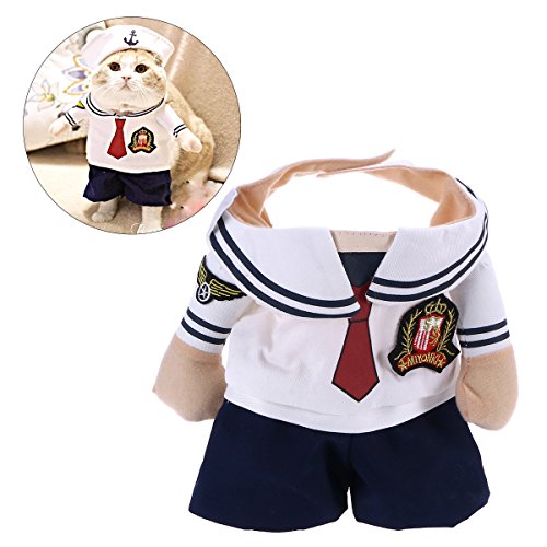 POPETPOP Poppop, Costume per Cani Regolabile e Facile da Indossare, con Cappello da Marinaio, per Cani, Gatti, Gattini, Vacanze
