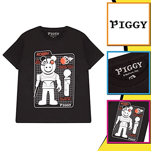 Popgear Piggy Robby Tech Specs Girls T-Shirt Nero 14-15 Anni