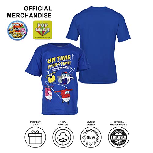Popgear Super Wings on Every Time Maglietta t-Shirt alla Moda, Blu, 5-6 Anni Bambini e Ragazzi