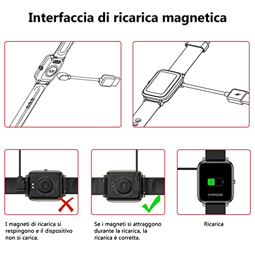【Sicurezza】 Il cavo di ricarica ha un regolatore di tensione e un PTC interno per proteggere il dispositivo da danni da sovracorrente quando collegato all'alimentazione elettrica. Progettato per prevenire sovratensioni e sovratensioni, può proteggere l'orologio da danni durante la ricarica.