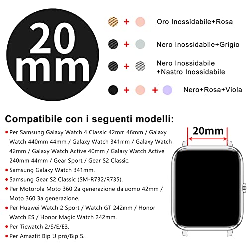 Popglory Cinturini di Ricambio per Smartwatch, 20MM Smart Watch Banda di Ricambio Milano Oro/Rosa Silicone per P22 (2PCS)