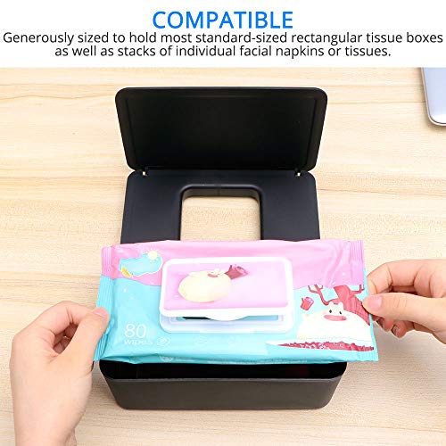 PopHMN Dispenser di salviette, Dispenser di salviette asciutte in tessuto bagnato con coperchio Coperchio Tovagliolo Contenitore Porta tovagliolo per desktop da casa (Nero)