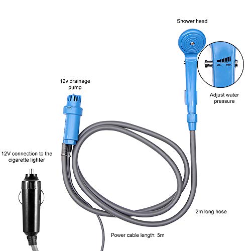 PopHMN Doccia da campeggio portatile, soffione doccia da campeggio compatto da esterno 12V Pompa elettrica da doccia portatile con gancio per ugello staccabile per doccia da campeggio Lavaggio auto