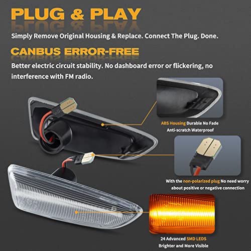 POPMOTORZ 2 Pezzi LED indicatori di direzione Trasparente, freccia auto,Indicatori di direzione laterali ambra con funzione dinamica per Op-el Astra J/Astra J K/Zafira C/Insignia B/Grandland X