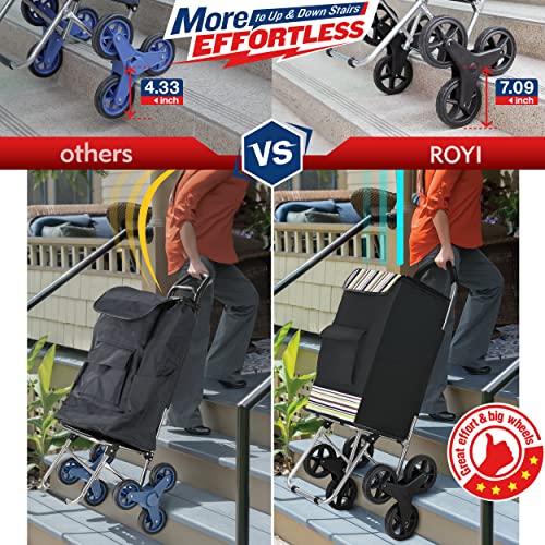 Popolic Nero Carrello Portaspesa, 2 en 1 Pieghevole Carrello Spesa in Alluminio, Capienza da 75L, 3 Grandi Ruote Silenziose, per Salire le Scale