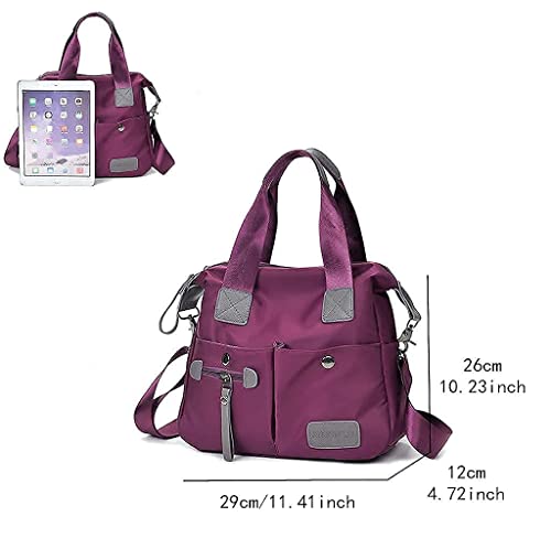 POPOTI Borsa Tracolla da Donna, Borsa a Mano Portafoglio Nylon Impermeabile Borsa Spalla Zaino Tote Multifunzione Scuola Tasca Messenger Crossbody Bag (Viola)