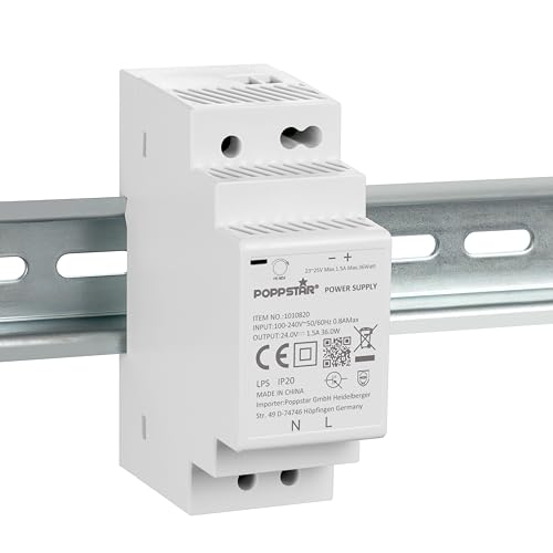 Poppstar alimentatore switching 220 24V per barra DIN 36W (ingresso 100-240 V AC 50/60 Hz, uscita 24 V DC 1,5A 36 W) DIN rail alimentatore