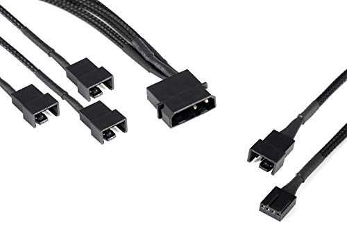 Poppstar cavo Molex per ventole 12V (cavo a Y 2-pin 15cm (1x spina Molex a 3x spine) + cavo di prolunga PWM a 4-pin 30cm) per collegare 3 ventole a un'alimentazione