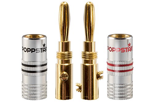 Poppstar Connettori a banana, per cavo fino a 4 mmq avvitamento o 6 mmq saldatura, contatti in oro 24k, set di 8