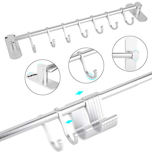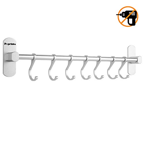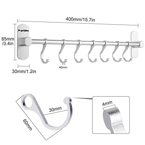 Poprkdre Porta Utensili da Cucina e Mestoli con 7 Gancio, 40cm Barra per Gadget Alluminio, Argento Opaco