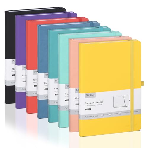 POPRUN Taccuino Classico a Righe A5 Copertina Rigida in Pelle Vegana, Quaderno Appunti di Linea con Tasca Interna, Chiusura ad Elastico, Portapenne, 240 Pagine, Diario di Qualità Confezione da 8