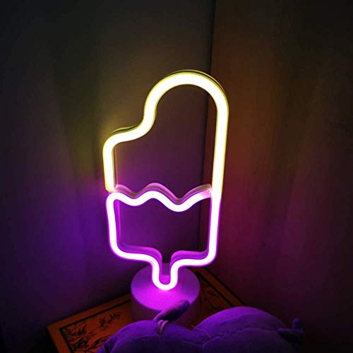 Popsicle Night Light Led Neon Segni con Base - Neon LED Luci a Batteria o USB Operato, Neon Luce Decorazione per Natale Festa di Compleanno Soggiorno Camera Da Letto Tavolo Bambini Regali