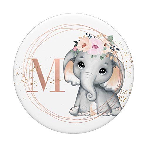 PopSockets Elefante Bianco Con Fiori Rosa Fard Carino Lettera M PopGrip: Impugnatura per Telefoni Cellulari e Tablet Intercambiabile