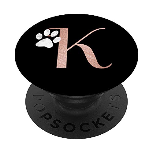 PopSockets Lettera K rosa, gatto bianco, monogramma a zampa di cane PopGrip: Impugnatura per Telefoni Cellulari e Tablet Intercambiabile