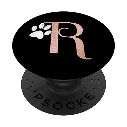 PopSockets Lettera R rosa, gatto bianco, monogramma a zampa di cane PopGrip: Impugnatura per Telefoni Cellulari e Tablet Intercambiabile