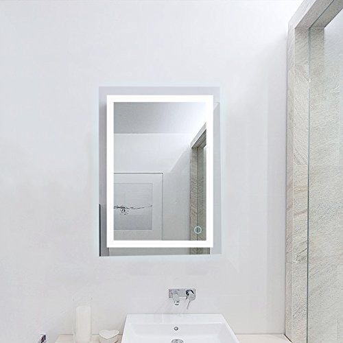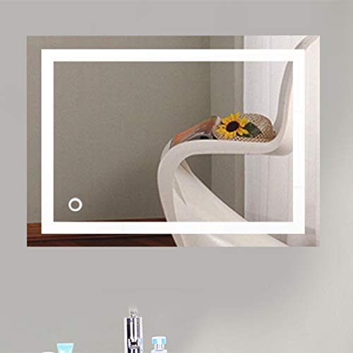 POPSPARK Specchio per trucco da parete a parete con specchio a LED per il bagno a parete a LED Nuovo pulsante (60 x 80 cm, bianco freddo)