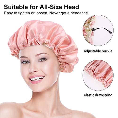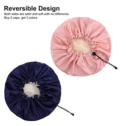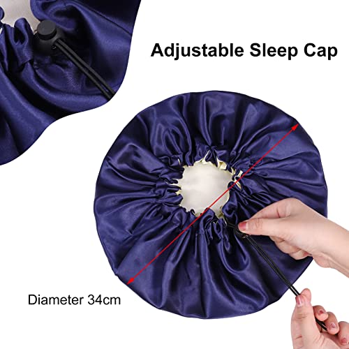 Popuppe Cappello da Notte Raso, 2 Pezzi Berretto da Notte Seta Doppio Strato Cuffia Capelli Notte Cuffia Seta Capelli Ricci con Elastico Regolabile a Banda Larga per Spa Doccia Sonno Cucina