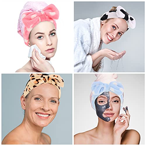 Popuppe Fascia Capelli Donna, 4 Pz Fascia Capelli per Spa con 2 Pennello Maschera in Silicone, Fascia Spa in Pile Microfibra per Donna Doccia Struccante Corsa Viso Lavaggio