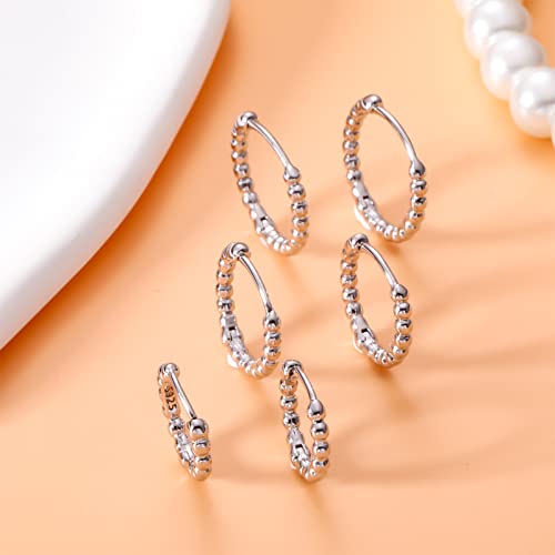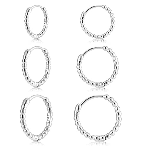 Popuppe 3 Paia Orecchini Cerchio Argento, 925 Argento Sterling Orecchini a Cerchio Orecchini Ipoallergenici Huggie Sleeper Orecchini 9/11/13 mm