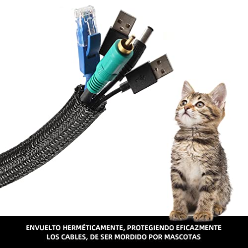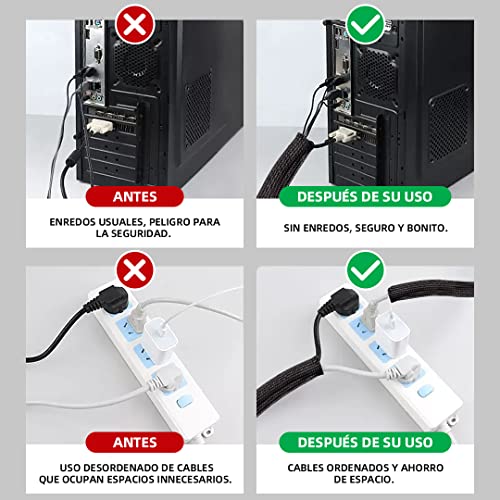 POPYS Organizzatore cavi + 20 fascette | Manicotto di cavo auto-chiusura, raccogli cavi | Copre cavi organizer cavi per tutti i tipi di funzioni (13-20mm/7m, Black)