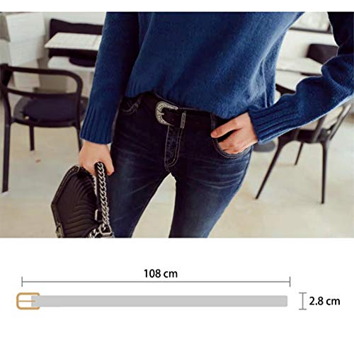 Porbbow Cintura classica da donna in pelle PU con fibbia ad ardiglione, cintura vintage retrò Navy