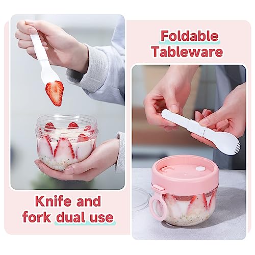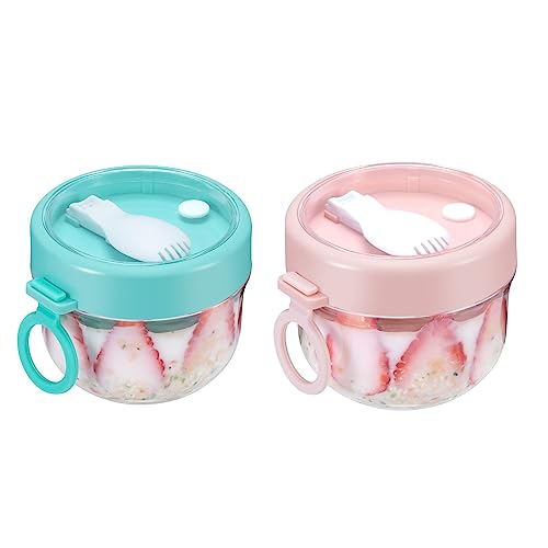Porlik Overnight Oats - Confezione da 2 bicchieri per yogurt, 450 ml, con coperchio per contenitore Cereal On The Go, da yogurt con cucchiaio, in vetro da andare (piccolo two)