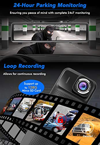 【Multifunzioni e supporto fino a 128 GB di scheda】 - Puoi ottenere TUTTE le funzioni necessarie dalla Mirror Dash Cam Specchietto Retrovisore multimediale PORMIDO da 12 ", come registrazione in loop, monitoraggio del parcheggio, sensore G, linee guida per il parcheggio, luminosità / angolo di visione regolabili, GPS ecc. Inoltre, supporta una scheda fino a 128 GB (la scheda da 32 GB è inclusa).