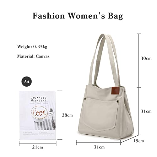 PORRASSO Borsa in Tela Donna Borse a Spalla Retrò Borsa Tote Sacchetto Borsetta per Scuola Viaggio Uso Quotidiano Bianco