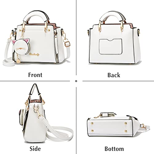 PORRASSO Donna Borsa a Mano Carina Borsa a Spalla Borsetta Impermeabile Borsa a Tracolla in Pelle PU per Shopping Incontri Viaggio Uso Quotidiano Bianco