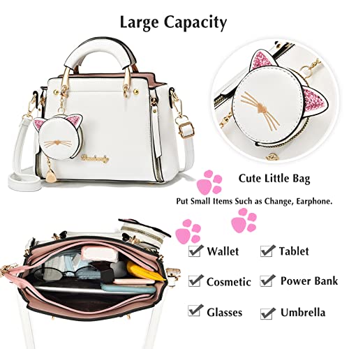 Pratico e Alla Moda - il portamonete a forma di gatto incluso non solo può contenere piccoli oggetti, ma può anche essere usato come ornamento per rendere la borsa carina ed elegante. Vieni con una tracolla lunga staccabile, puoi usarla come borsa a tracolla, tracolla o borsetta in base alle tue preferenze e ai tuoi vestiti! Design quadrato semplice e classico, puoi abbinare facilmente qualsiasi vestito.