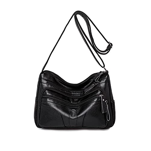 PORRASSO Donna Borsa a Tracolla Casual Borse a Spalla Pelle Impermeabile Borsetta per Lavoro Shopping Viaggio Uso Quotidiano Nero