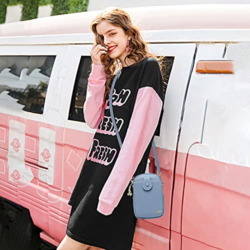 PORRASSO Donna Borse a Tracolla Impermeabile Piccola Borsa per Cellulare Borsetta Pelle Mini Cellulare Portafogli Phone Bag per Telefoni Cellulari Sotto i 7 Pollici Blu