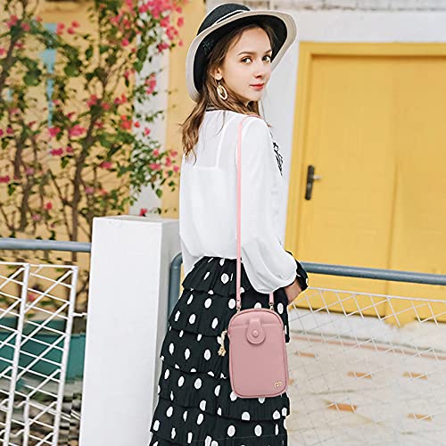 PORRASSO Donna Borse a Tracolla Impermeabile Piccola Borsa per Cellulare Borsetta Pelle Mini Cellulare Portafogli Phone Bag per Telefoni Cellulari Sotto i 7 Pollici Rosa
