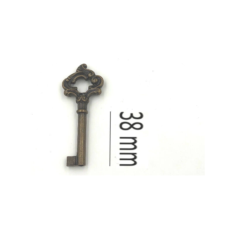 Chiave per mobile in ottone gambo mm.38. Foro gambo mm.3.5. Finitura bronzo antico.