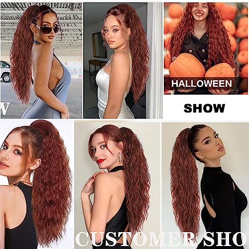 PORSMEER 76 cm Auburn Coda Capelli Extension con Coulisse Lunga Ondulati Ricci Posticci Sintetici Ondulati Coda Cavallo Extension Posticci Extension Capelli per le Donna