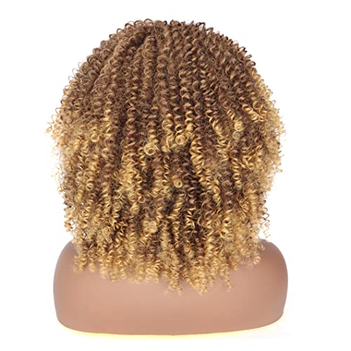 Porsmeer Parrucca Afro Riccia Con Frangetta Per Donne Nere 14 Pollici Parrucca Sintetica Resistente Al Calore Capelli Afro Crespi Parrucche Piene (Marrone Nero Misto)