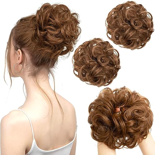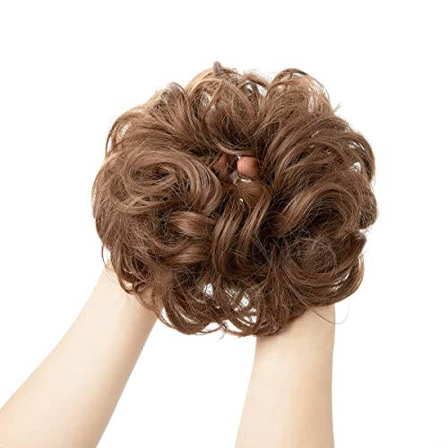 PORSMEER 2 pezzi Chignon Finto per Capelli, Elastici Chignon Finto Sintetica Ondulato Capelli Veri Coda di Cavallo Pezzo di Capelli Spessi Updo per Donne Ragazze,marrone rame